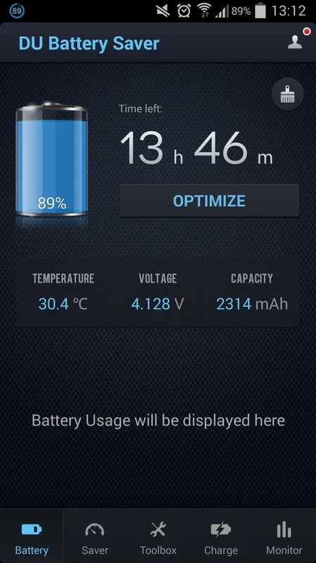アプリのメインページには、バッテリー残量とバッテリー残量(パーセント)に加え、バッテリー切れまでの残り時間、または充電完了までの残り時間が表示されます。また、バッテリーの動作に使用される温度、テクノロジー、電圧も表示します。その他、以下のような重要なオプションも利用できます。