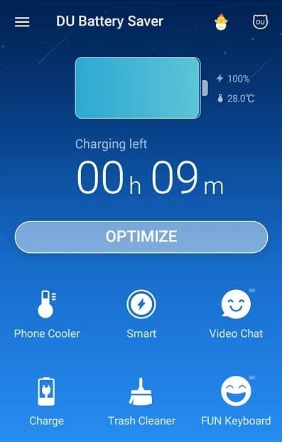 シンプルなデザインで、複雑な操作は一切ありません。初心者でもメニューから重要な機能に確実にアクセスできます。起動後、メイン画面にアクセスすると、バッテリーの問題と「今すぐ修正」または「最適化」ボタンが表示されます。アイコンをクリックすると問題を修正でき、バッテリーを冷却して長持ちさせる自動プロセスが開始されます。画面左側には、オプションと設定を表示するためのスライドがあります。メニューから、DUバッテリーテーマやスキンのロック解除など、さまざまなオプションにアクセスできます。